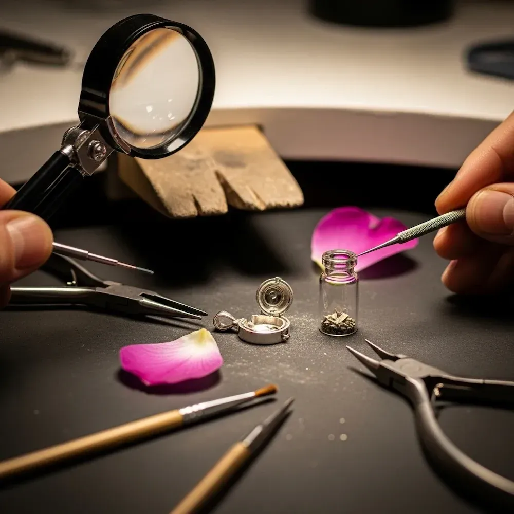 Memorial jewellery is jewellery that holds a small, meaningful inclusion such as ashes, hair, fur, or breastmilk. Each piece is designed to keep a memory, loved one, or moment close to you in a subtle and beautiful way.